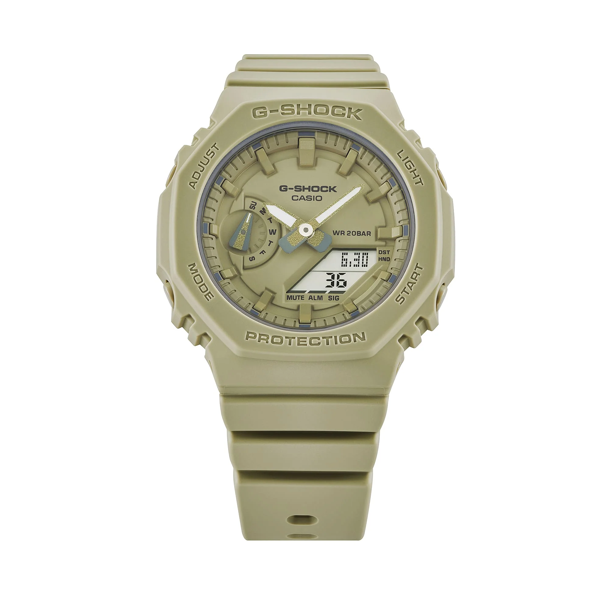 Simplify your life with the popular analogue-digital combination GMA-S2100 in your choice of smoky, monochromatic colours. The same tough construction of the original GA-2100, but in an even slimmer, more compact design. The flat watch face and simple bar indexes project a minimalist look and feel that shows you know right where you're going. A casual, comfortable G-SHOCK in stylish solid colours.