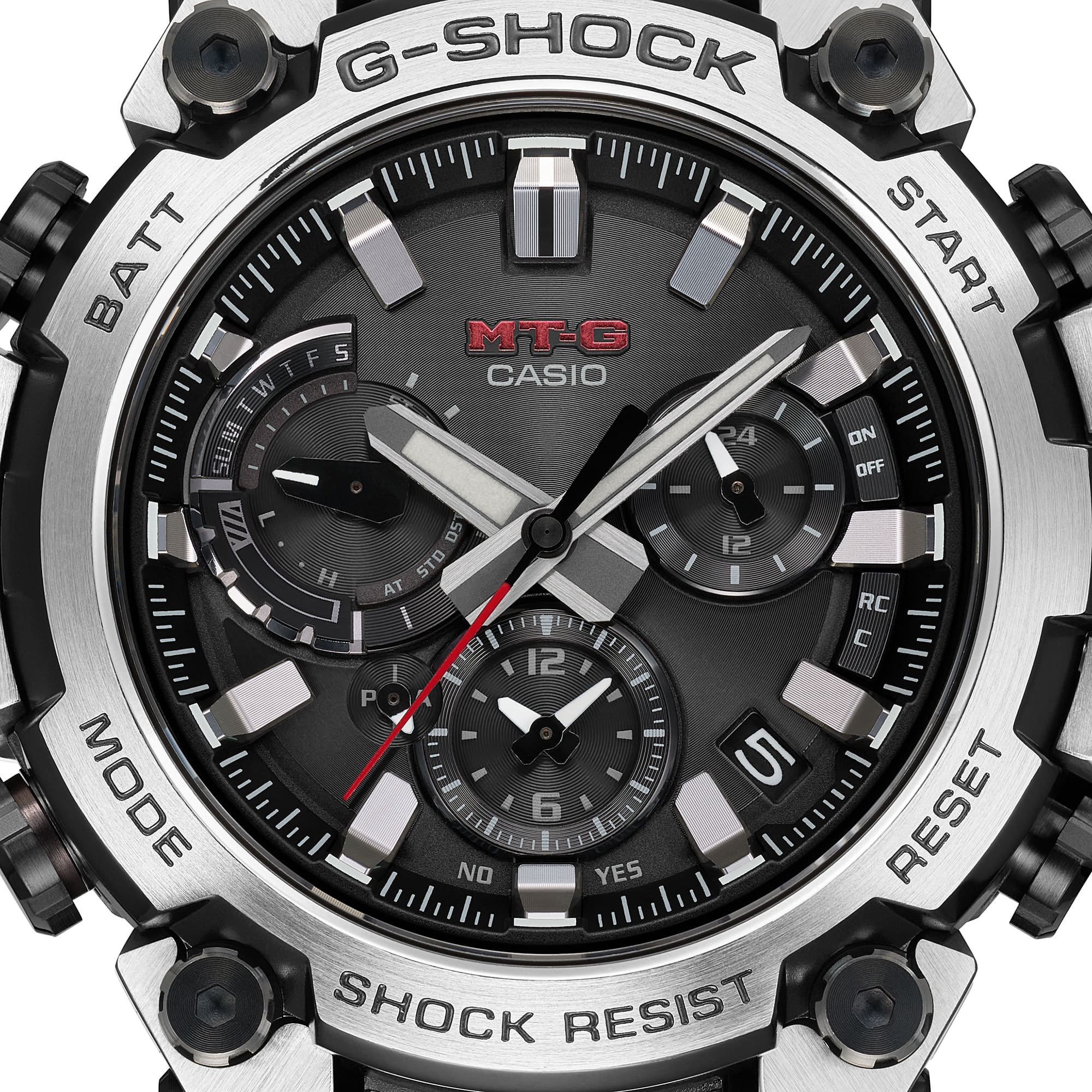Welcome to a whole new level of sophisticated structural design. With its even more advanced Dual Core Guard structure, the MTG-B3000 protects the module in a carbon-reinforced resin case and encloses the exterior in metal components. Repeated pressing, cutting, and polishing builds the stainless steel case back upward into an intricate 3D form.
